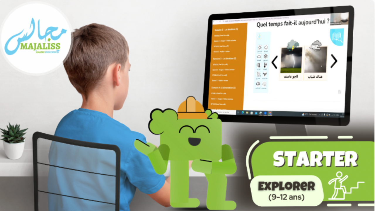 🐣 Atelier en ligne 100 % en arabe pour les enfants de 4 à 8 ans (niveau Starter). Deux séances par semaine pour progresser à l’oral en immersion, sans traduction.