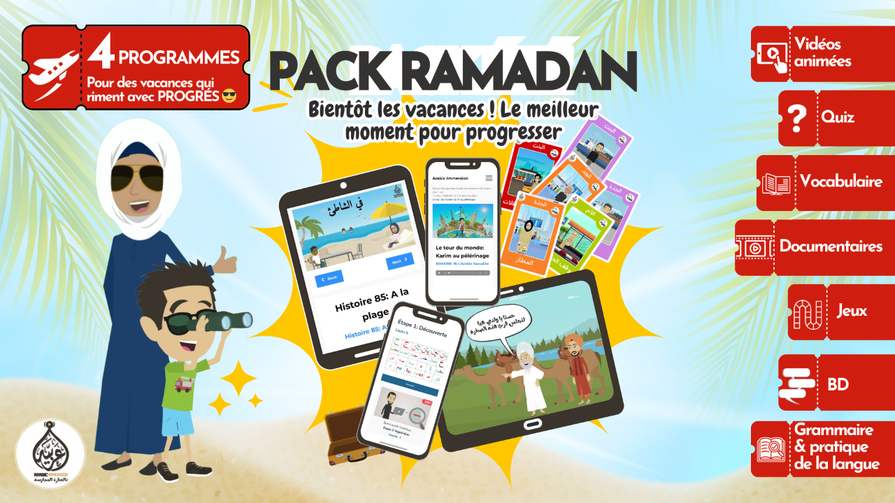 Ce pack unique regroupe les meilleurs programmes immersifs pour apprendre à lire, comprendre et s’exprimer en arabe, tout en découvrant des histoires captivantes et des aventures culturelles.